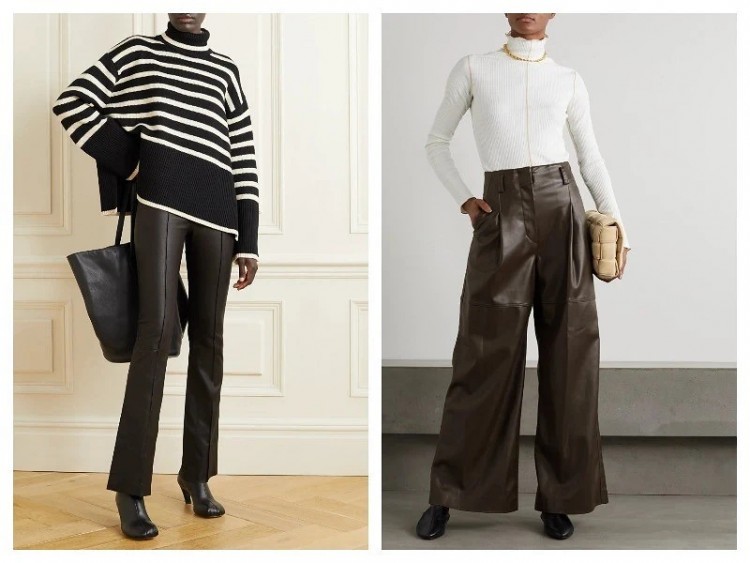 Шкіра і екошкіра залишаються одним з найбільш очевидних модних трендів, і штанів це теж стосується. Вибирайте будь-яку з моделей, які вам сподобались: прямі, широкі, кльош, укорочені – якщо ці варіанти будуть пошиті зі шкіри, ви в будь-якому випадку будете виглядати в них актуально.