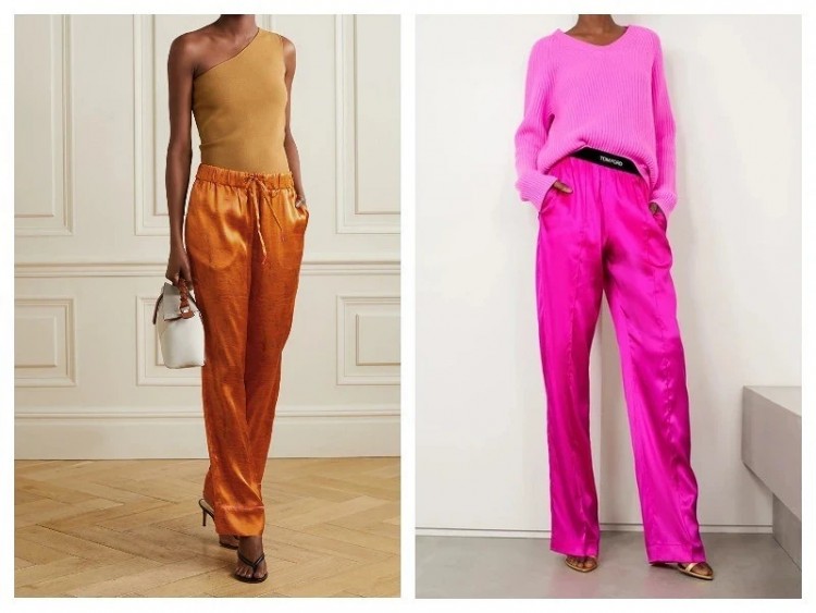 Прекрасний, жіночний і вишуканий вечірній тренд: широкі штани зі струмуючих шовкових матеріалів. Шляхетний блиск, складки, що м’яко підкреслюють фігуру: таким моделям не потрібні новації крою, адже першу скрипку гратиме сам матеріал.