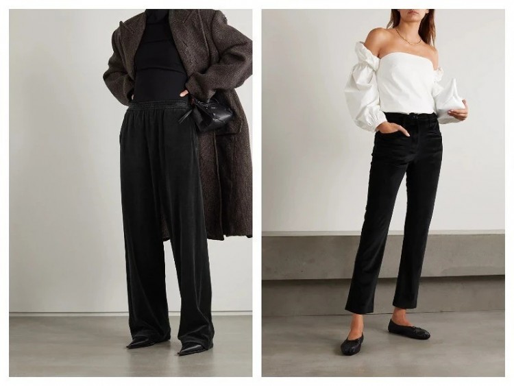 Ще одна тенденція, яка дуже вдало підходить для вечірніх виходів, при цьому доречна для реалізації і в повсякденній моді: штани з оксамиту. Моделі можуть бути абсолютно різними, наприклад, більш широкі довгі варіанти або укорочені брюки джинсового крою, матеріал зробить їх надзвичайно стильними.