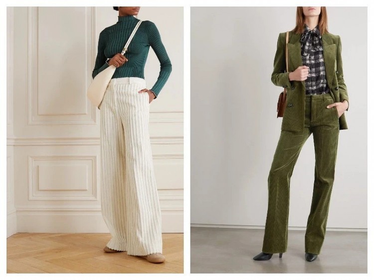 Окремо варто згадати широкі і розкльошені штани з вельвету. Популярність цього комфортного і, разом з тим, благородного матеріалу – ще один показник моди 1970-х, яка панує сьогодні. І вельветові штани, актуальні в новому сезоні, змушують згадати моделі, які носили півстоліття назад: комфортна посадка і кльош від початку або середини стегна.