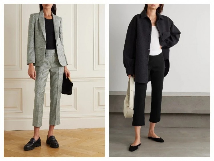 Ще один тренд, який з нами не перший сезон – вузькі укорочені штани. Вони гарно виглядають як соло, так і в комбінації з трикотажем, і в складі костюму. З приходом холодів до таких моделей добре підійдуть черевики з високою халявою, що облягає щиколотку.