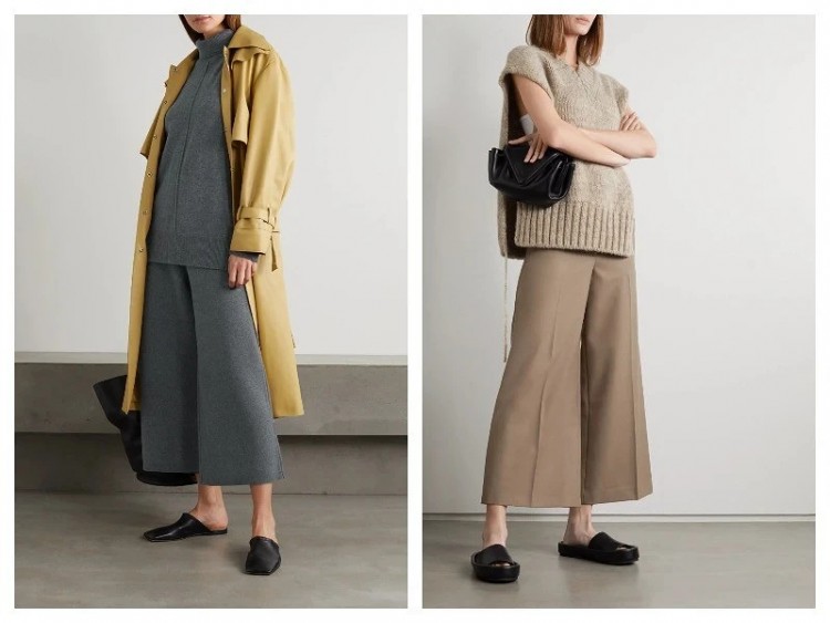 Ще один цікавий тренд: укорочені штани широкого крою. Ймовірно, цю довжину можна порівняти з популярною зараз для спідниць і суконь довжиною мідаксі, яка являє собою щось середнє між міді та максі. Подібні моделі очевидно коротші за штани традиційної довжини але все ж не настільки короткі, щоб впевнено назвати їх кюлотами: виходить незвичайно і цікаво.