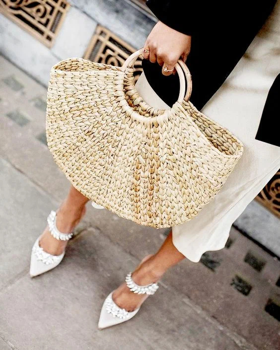 Стилісти із задоволенням доповнюють різні стилістичні аутфіти трендовими солом’яними сумочками, сміливі експерименти виходять надзвичайно виразними і стильними. Давайте разом помилуємося модними образами, головною родзинкою яких є сумки з натурального матеріалу.