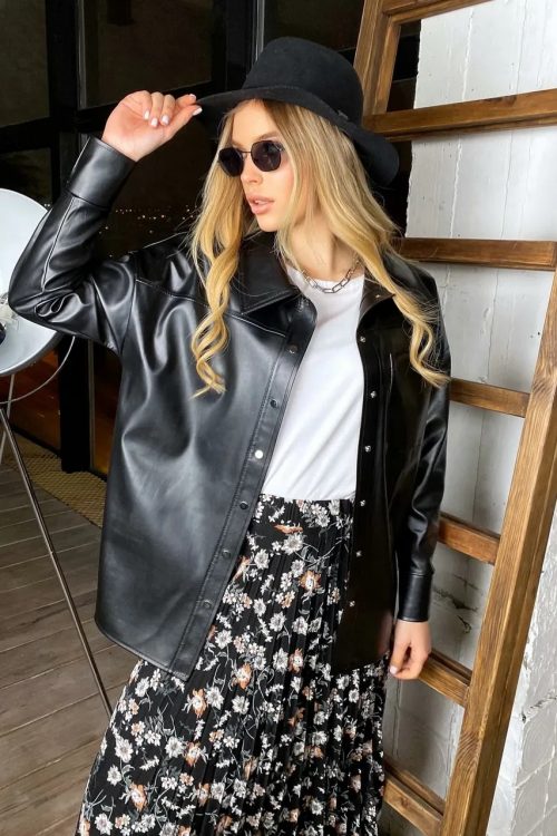 Який сезон поспіль до ТОП-10 найактуальніших моделей жіночих сорочок входять шкіряні сорочки, що мають як низку переваг, так і недоліків. До їх переваг можна віднести практичність у побуті і майже повну універсальність, а до недоліків – досить щільну тканину, тому в спекотні дні в шкіряних сорочках некомфортно.