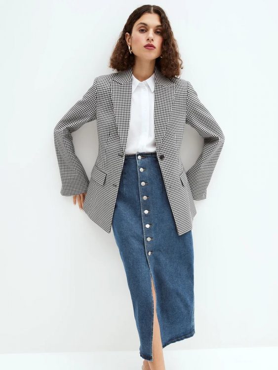 Більш актуальні прямі моделі спідниць з деніму мають довжину міді або максі. Вони можуть бути доповнені наскрізною застібкою чи розрізами. Підібрати верх до спідниці з деніму легко – підійдуть будь-які речі в стилі кежуал і короткий верхній одяг.