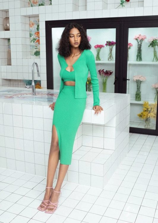 Цей тренд для найвпевненіших у собі дівчат та жінок. Не кожна фігура витримає випробування тонким трикотажем у локшину. Але якщо ви ще не встигли зневажати ці милі трикотажні комплекти з 2-х або 3-х трикотажних речей зі штанами, то можна звернути увагу на комплект зі спідниці та кардигану.