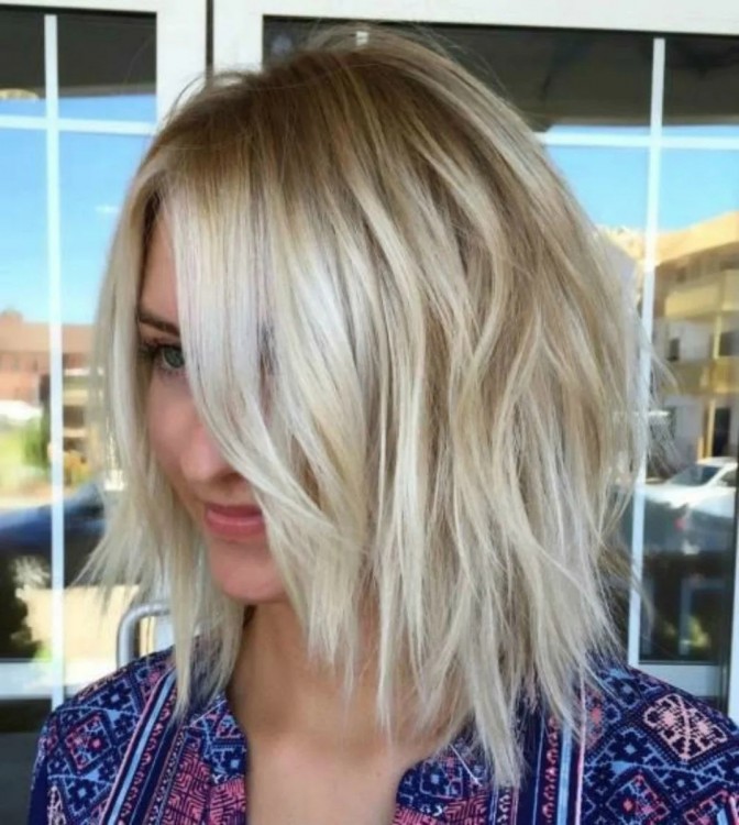 Перша в нашому топі йде відома стрижка, яка ідеально підходить тим жінкам, у яких тонке та ослаблене волосся. Завдяки певній техніці шевелюра в даному випадку виглядає більш пишною та об’ємною. При цьому, така зачіска не вимагає складних маніпуляцій, достатньо кількох рухів і ви отримаєте чудову укладку.