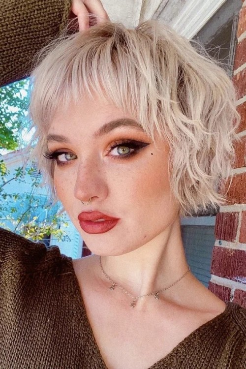 Наступна філірована стрижка короткої довжини з чубчиком «дугою» прикрасить собою красунь з квадратною, овальною або трикутною формою обличчя. Обов’язковою умовою для цієї стрижки буде створення трендового хаосу на голові за рахунок легких кучериків.