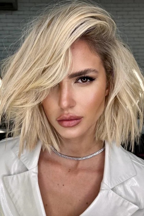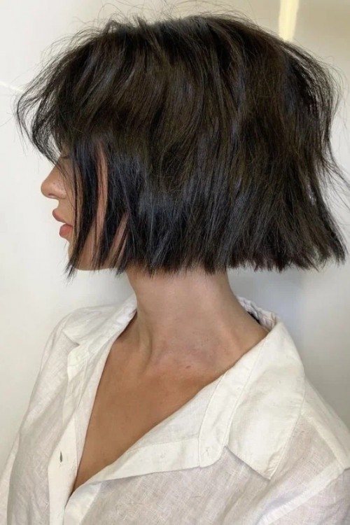 Перший варіант стильної стрижки 2022 – це «каре-боб» з рваним ефектом. Ця стрижка стане чудовим порятунком для тих, кому не вистачає візуального об’єму та густоти на голові. Комбінувати її можна з ультрамодним чубчиком «шторкою» або косою фільованою моделлю.