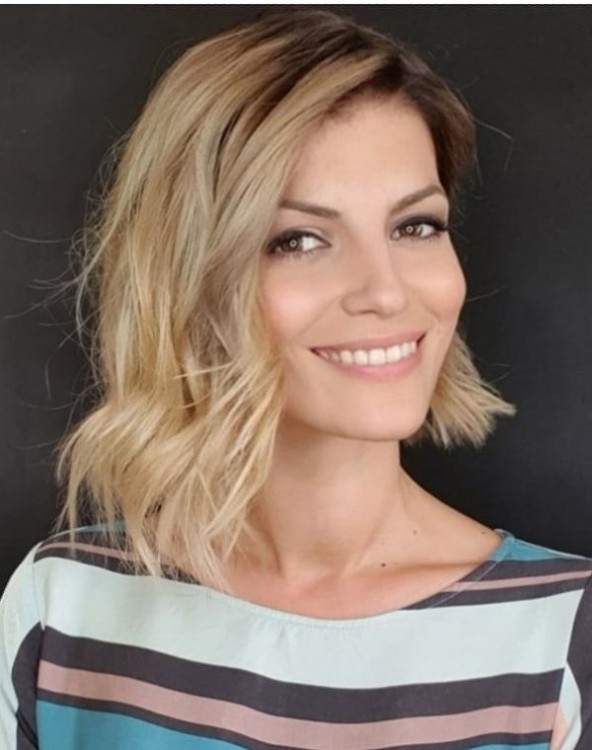 Пропонуємо вашій увазі різновид хвилястого бобу. Його особливість — кучеряві пасма, що розлітаються. Зачіска чудово підійде романтичним натурам, надасть їм легкості та чарівності. Щоб досягти такого ефекту, фахівцю доведеться трохи прорідити кінчики, а вам намагатися проводити філірування щомісяця для підтримки свіжого і красивого образу.