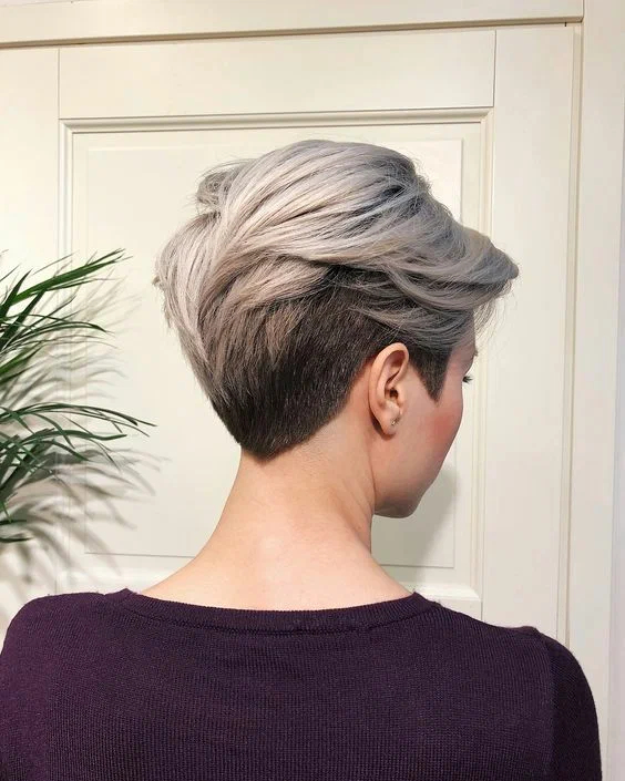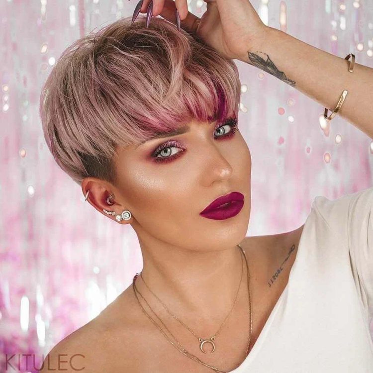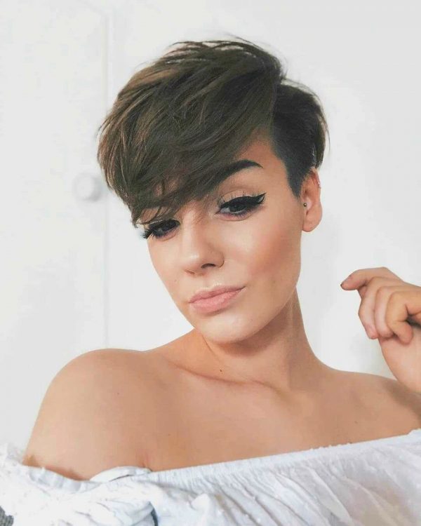 Зухвала ультракоротка стрижка піксі з поголеною скронею та подовженим чубчиком ідеально підкреслить вашу індивідуальність та палкий характер.