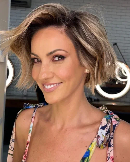Те, що ви мама, не означає, що вам потрібно дотримуватись тієї ж старої нудної стрижки! Цей короткий стрижений боб дозволяє вам з комфортом прибирати волосся з обличчя і, водночас, виглядати сучасно. Приголомшливий балаяж на короткому волоссі ідеально підходить для завершення стильного образу.