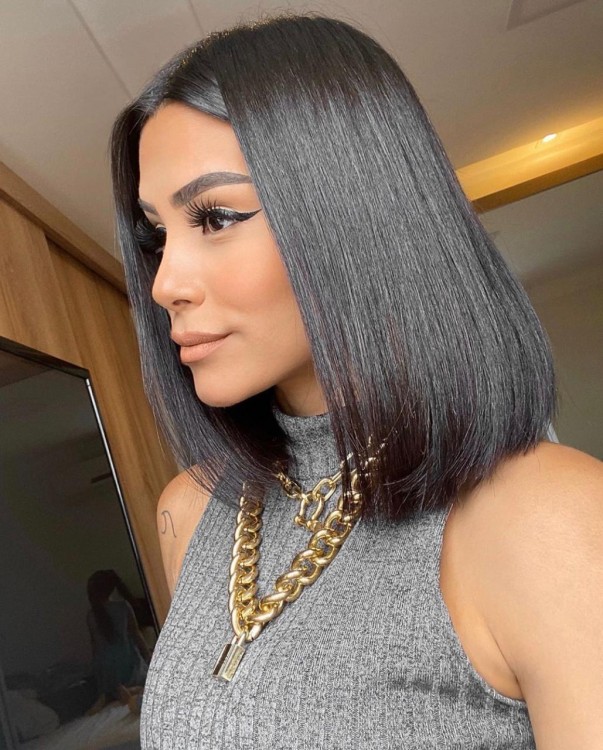 Представниці прекрасної статі люблять цю стрижку за універсальність і ефект, що омолоджує. Подовжені пасма філірують на кінцях, тому овал обличчя здається м’якшим і гармонійнішим, а волосся випромінює здоров’я. Підборіддя виглядає жіночнішим. Боб без чубчика виглядає природно. Його простіше вкладати, ніж робити зачіски з чубчиком. Це вибір впевнених у собі жінок, котрі точно знають, що хочуть отримати від життя.
