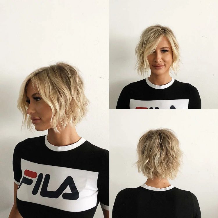 Об’ємні локони та косий проділ + рівний зріз – секрет ефектної короткої стрижки.