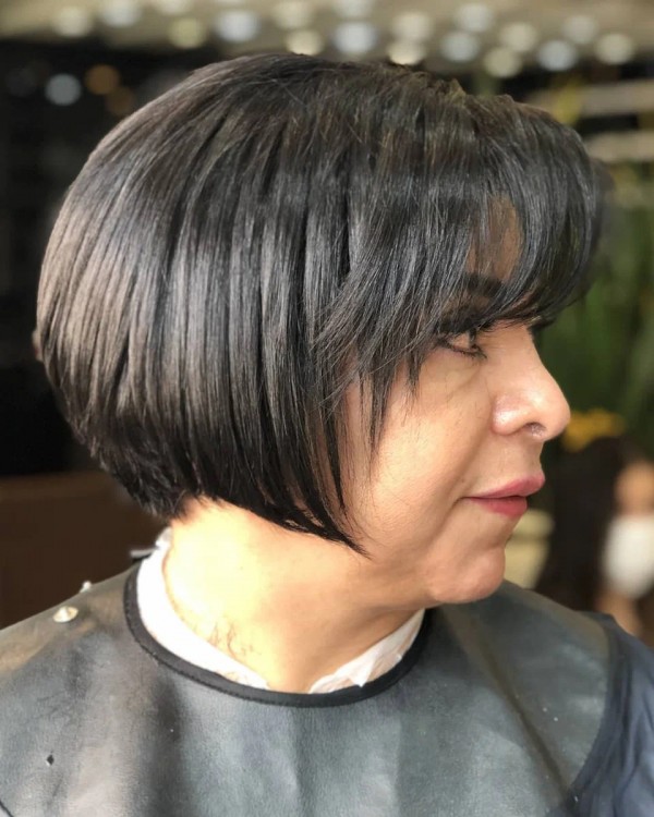 Старші жінки рідко наважуються вибрати темний відтінок волосся. Але, якщо ви належите до сміливих і яскравих жінок, тоді можете спробувати темний колір красиво оформити в стильну стрижку. Візьміть на замітку будь-яку пряму стрижку, яка ідеально виглядає на густих та здорових локонах.