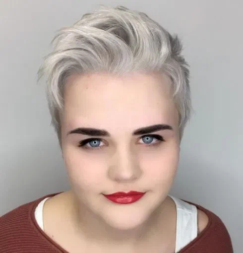 Ультракоротка стрижка піксі з піднятим догори волоссям — модель, яка має ефект ліфтингу. Не забувайте про те, що прикореневий об’єм на волоссі допоможе вам виглядати не тільки сучасно, але й максимально струнко і витончено.