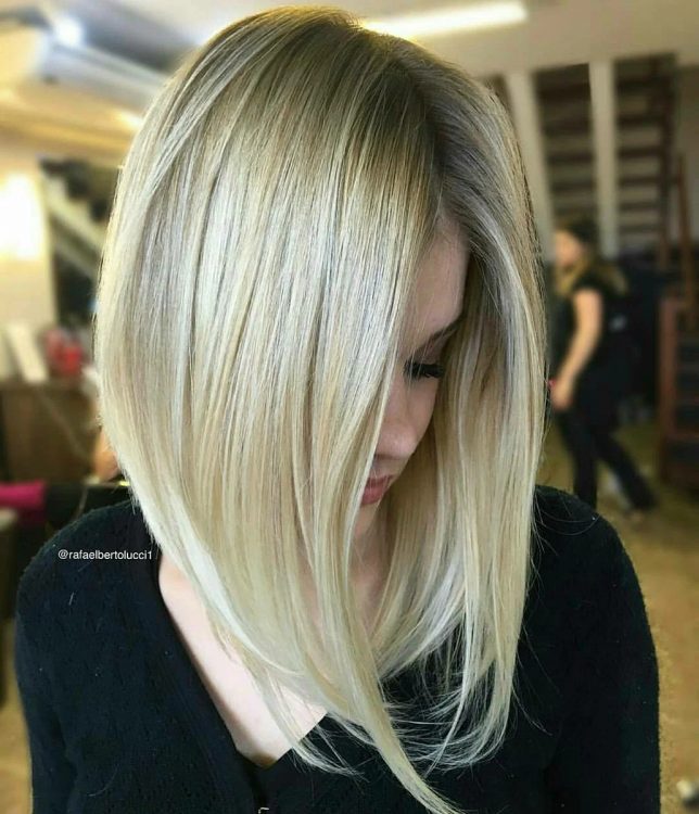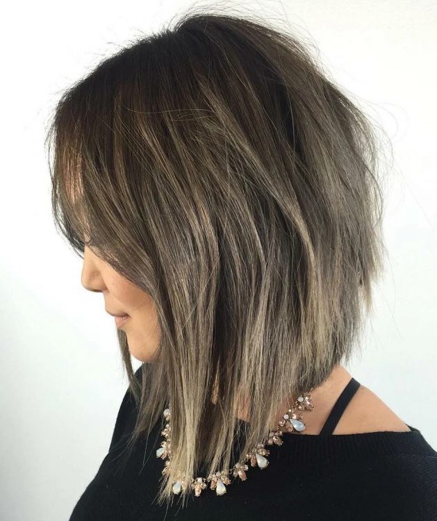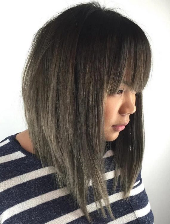 Якщо ви володарка тонкого волосся, яке не тримає прикореневий об’єм, тоді вам слід придивитися до стильної стрижки боб з укороченою потилицею та максимально довгими передніми пасмами. Цю модель стрижки можна поєднувати з косими чубчиками.