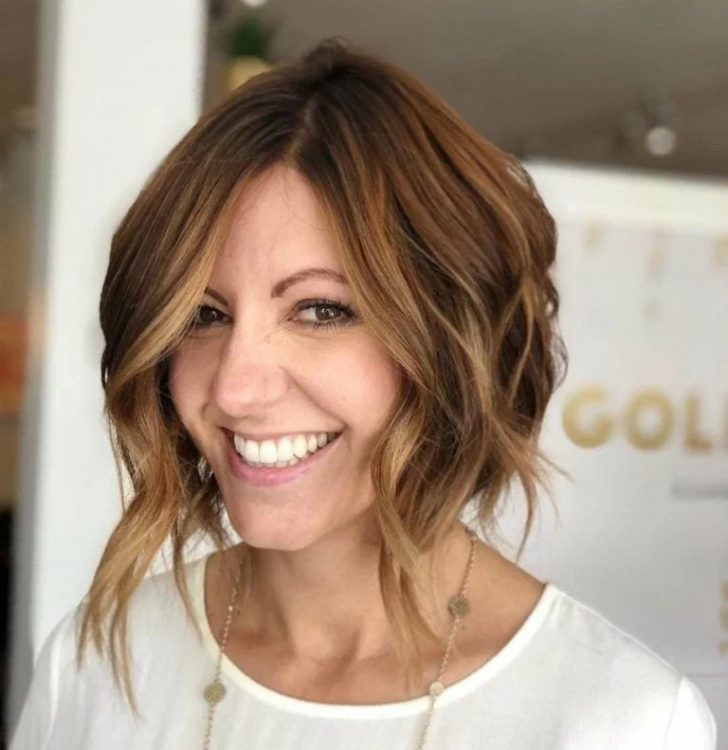 Почнемо наш список із ефектної кучерявої стрижки боб з подовженими передніми пасмами. Цій стрижці підходять, як рівне, так і кучеряве волосся. За рахунок своєї асиметрії вона робить стрункішим овал обличчя і підкреслює вилиці.