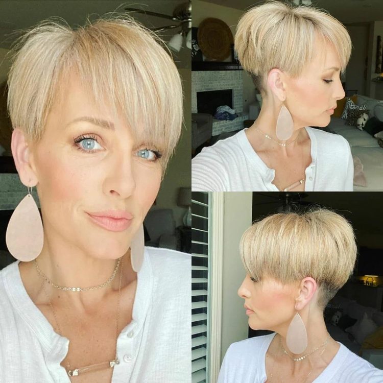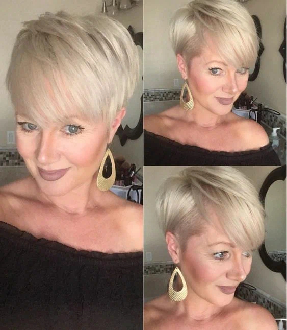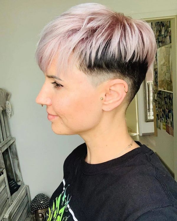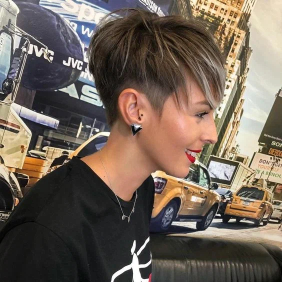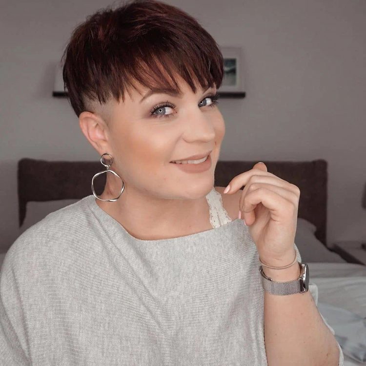Шалено красива і сучасна стрижка піксі з прямим філірованим чубком і виголеними скронями виглядає дорого. З такою стрижкою зовнішність будь-якої дорослої жінки зміниться до невпізнанності.