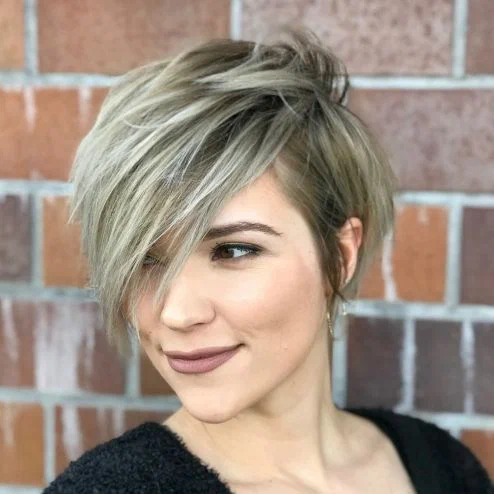 Красива стрижка піксі – це ідеальний формат для жінок, які забули, що таке прикореневий об’єм. Коротке волосся з правильним зрізом ідеально «тримає» форму, додає волоссю не тільки прикореневого об’єму, але й візуальної густоти. Щоб виглядати не тільки молодо, а й струнко, цю стрижку доречно доповнити подовженим чубчиком.
