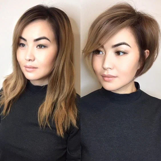 Довжина волосся, що доходить до мочки вуха, робить обличчя максимально підтягнутим і струнким. Створювати ефектні об’ємні укладання зі стрижками боб або піксі не складе труднощів навіть у домашніх умовах, маючи під рукою гребінець і фен.