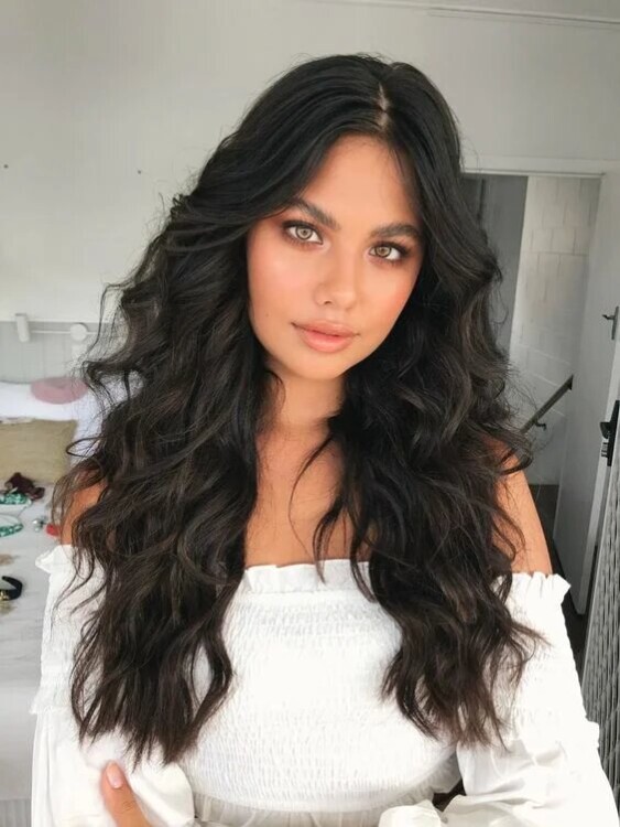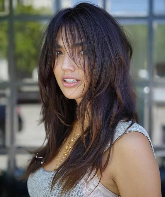 Каскад дивовижно виглядає на довгому волоссі. Світло-карамельні відблиски на темній базі візуально створюють ефект густоти, волосся виглядає натурально і по-осінньому тепло.