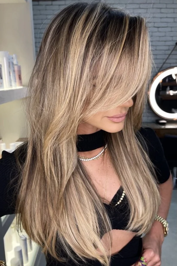 У цьому, а також наступному 2022 році стилісти-перукарі пропонують нам додати родзинки прямому довгому волоссю за допомогою драбинки біля обличчя або довгого чубчика-шторки. Завдяки філірованим пасмам волосся, будуть виходити максимально ефектні, жіночні і легкі укладки.