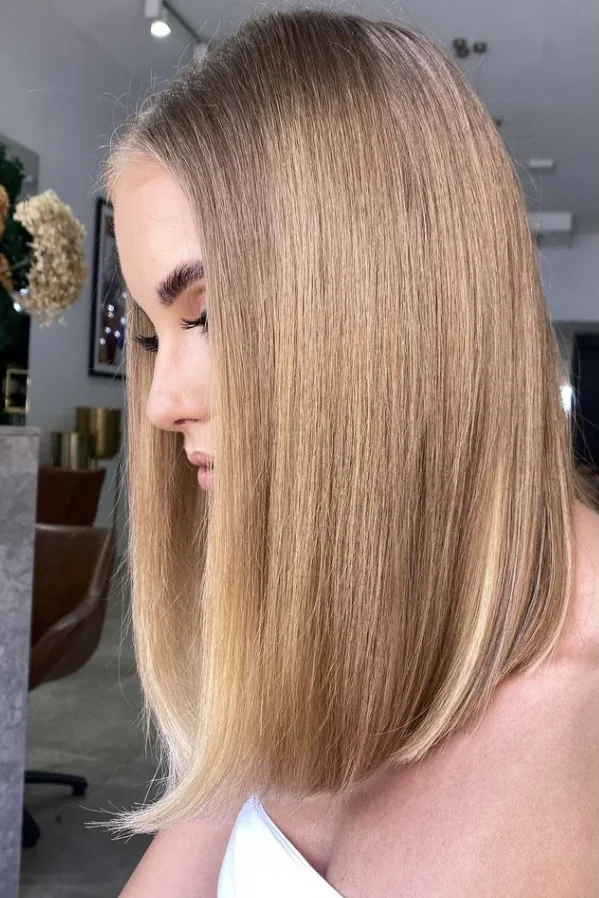 Подовжене каре з прямим проділом і рівним зрізом – класика, яка молодить зовнішність. Ультрамодна довжина волосся до плечей дозволяє сміливо експериментувати з різними видами зачісок. Ви можете дозволити собі зробити високий хвіст, пучок, мальвінку або ж елегантні великі кучерики від самих коренів.