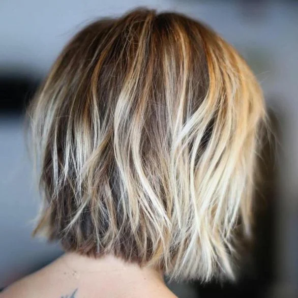 Для тонкого волосся однією з кращих стрижок вважається класичний короткий боб з шарами на потилиці. Ця ж стрижка ідеально підійде власницям круглого обличчя за рахунок рваних пасом і точної форми стрижки.