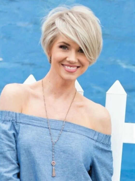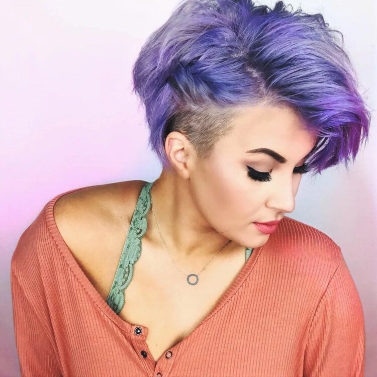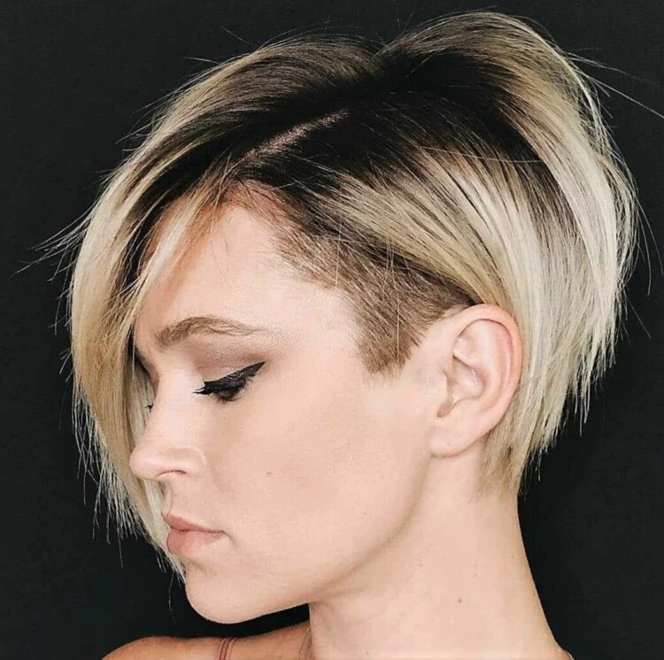 У разі, якщо представниці прекрасної статі не подобаються зухвалі стрижки, доповнені поголеними скронями, їй варто звернути свою увагу на представлену стрижку. Також, при бажанні можна зробити чубок на бік. Завдяки цьому образ буде неймовірно привабливим.