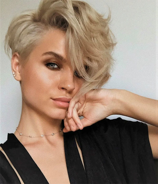 Короткі зачіски далеко не завжди підходять жінкам із широкими вилицями — вони відкривають усе те, що так хочеться приховати. Але зухвала (а разом з тим така елегантна) стрижка піксі – зовсім інша річ. Особливо асиметричний її варіант – з глибоким бічним проділом і подовженим чубчиком. Спадаючі на вилиці пасма роблять овал обличчя більш витонченим.