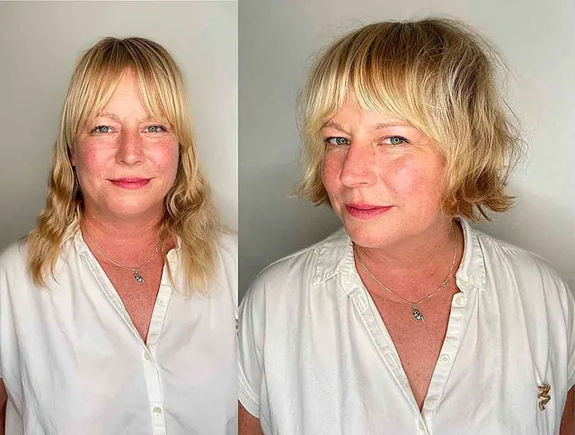 Коротка стрижка з чубчиком-фіранкою для жінок за 50