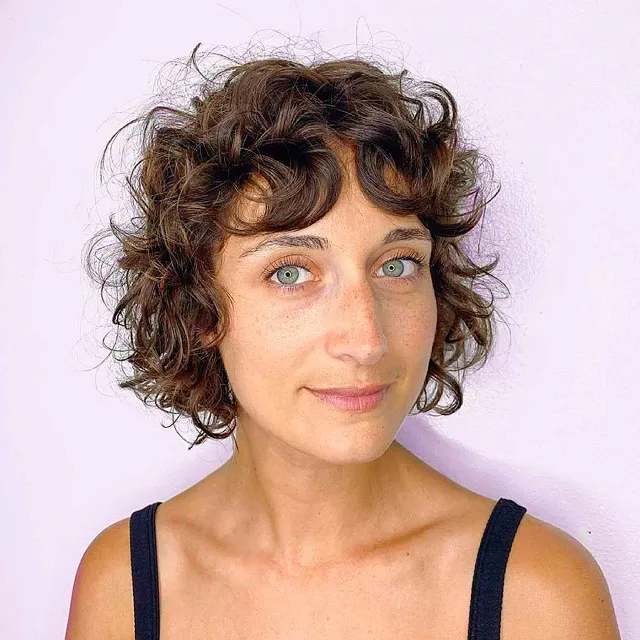 Цікава зачіска з чубчиком-шторкою на кучерявому волоссі