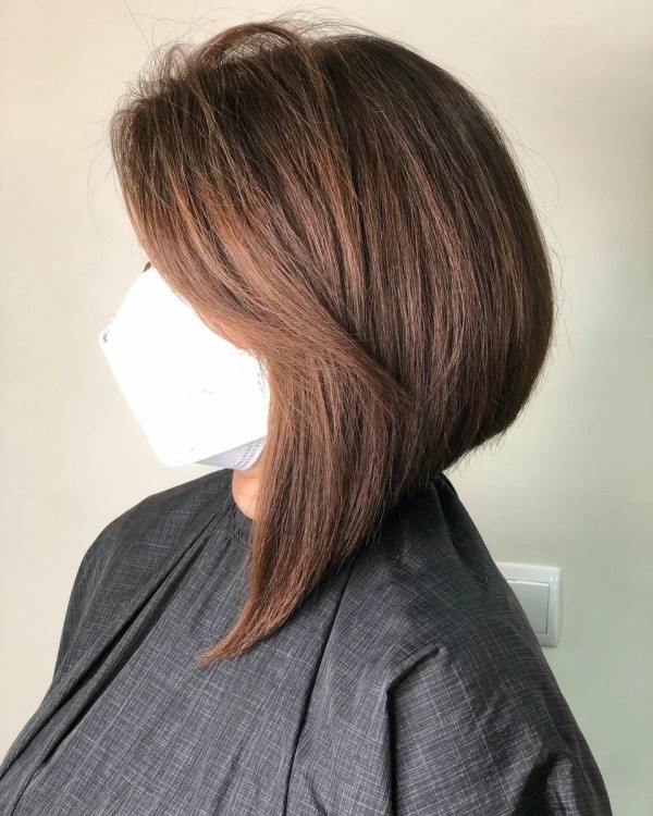 Безумовним плюсом стрижки для жінок 40 років, що мають густі пасма, є правильне формування об’єму зачіски. За допомогою подовження майстри знімають важкість, а техніка стрижки робить вилиці худішими. Косий чубок надає жінкам шарму та чарівності.