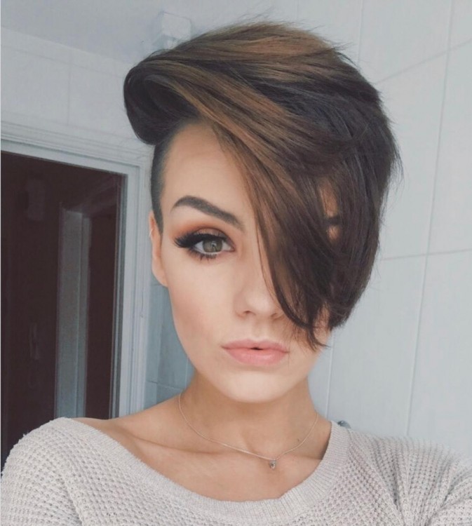 Укорочений, зухвалий чубчик – це вибір активних та стильних жінок у 2022 році. Підходить варіант далеко не всім жінкам, тому що головна особливість – максимально відкритий вигляд. Але навіть це не лякає милих леді, такий чубчик дуже люблять зрілі жінки, які вибирають для себе модну ультракоротку піксі. Вкладають його не тільки у природному прямому вигляді, але й брутально прибирають нагору.