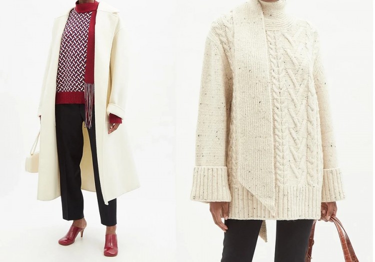 Така проста деталь як комір-шарф може надати вишукану нотку навіть базовому светру або пуловеру. Начебто нічого незвичайного але, в той же час, комір виступає в ролі ефектного акценту. Цей варіант впевнено претендує на звання наймоднішого светра зими, так що обов’язково придивіться до таких моделей!
