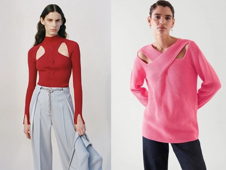 Мабуть, такі варіанти светрів та джемперів будуть не такими теплими, як моделі із попередніх двох пунктів, але не можна не визнати, що вирізи виглядають дуже ефектно!