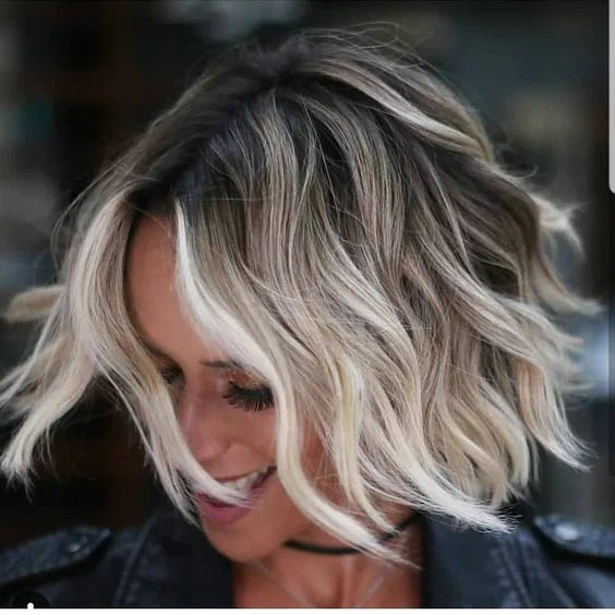 Перед вами актуальний тандем, а саме стрижка боб в одній комбінації з текстурованими кучерями та косим градуйованим чубчиком. Дана модель стрижки допоможе зробити з тонкого волосся густу шевелюру, про яку ви завжди мріяли.