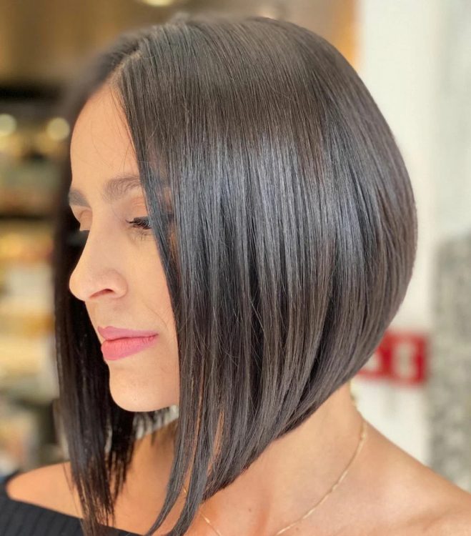 Наступна стрижка, яка створена для того, щоб прикрашати собою сучасних жінок зрілого віку – це каре-боб з рівним зрізом. Стилісти-перукарі рекомендують носити її з рівним волоссям, а ось з проділом тут можна поекспериментувати, створюючи, як косий, так і рівний варіанти.