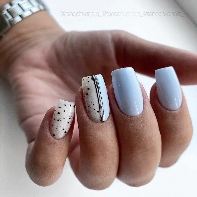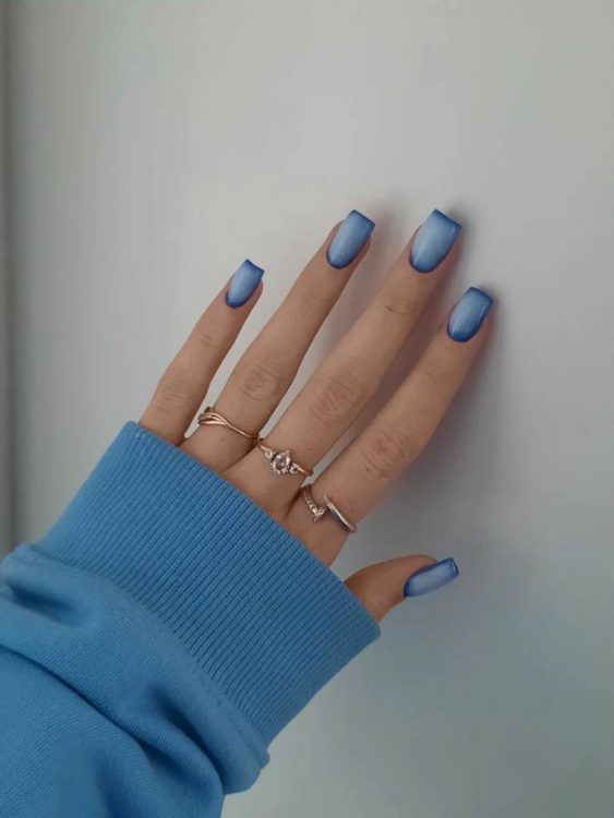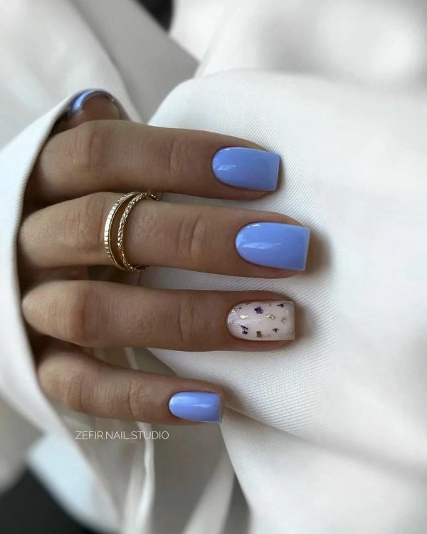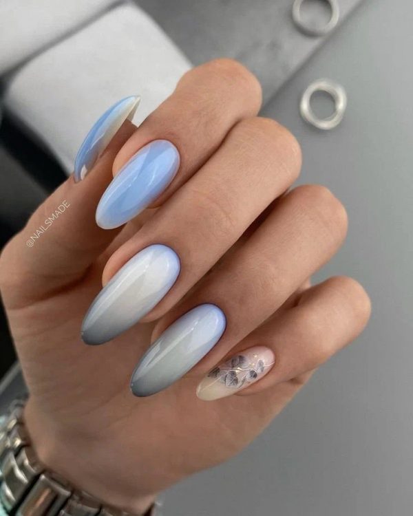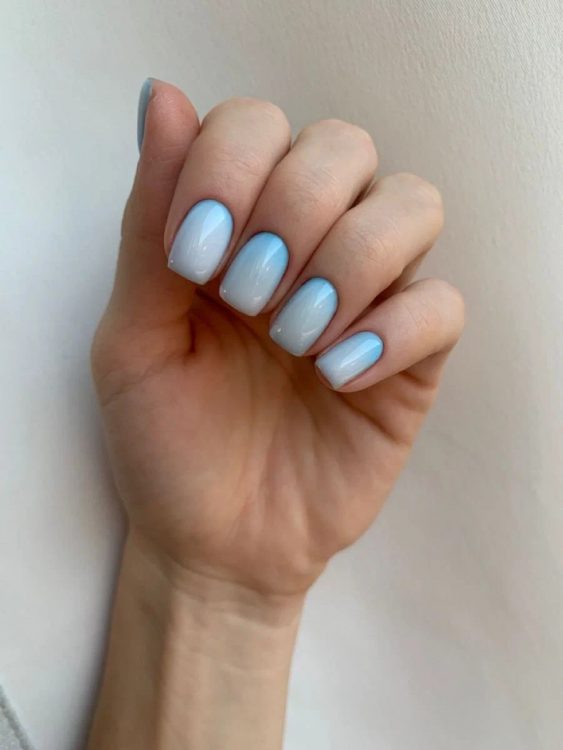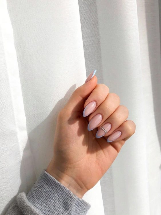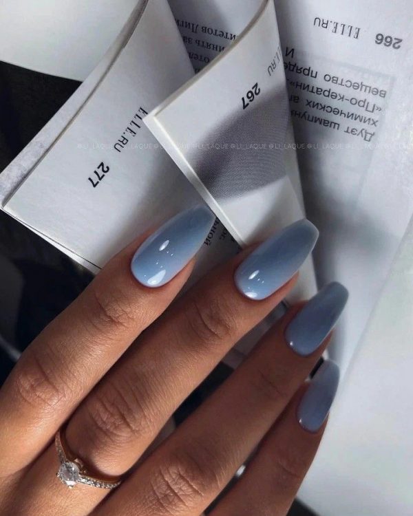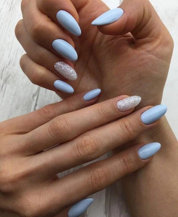 Блакитні відтінки в манікюрі завжди виглядають витончено, елегантно, дуже ніжно та жіночно. Вони чудово підходять для нігтів будь-якої довжини та форми.