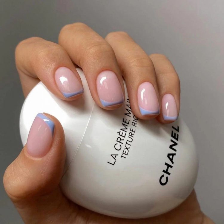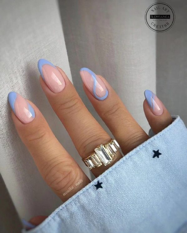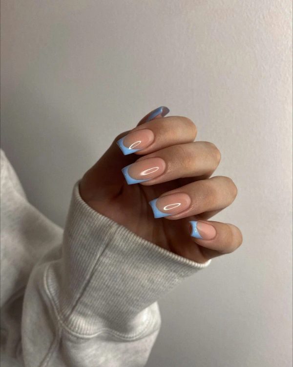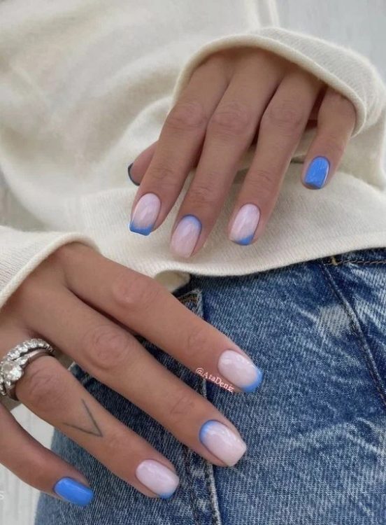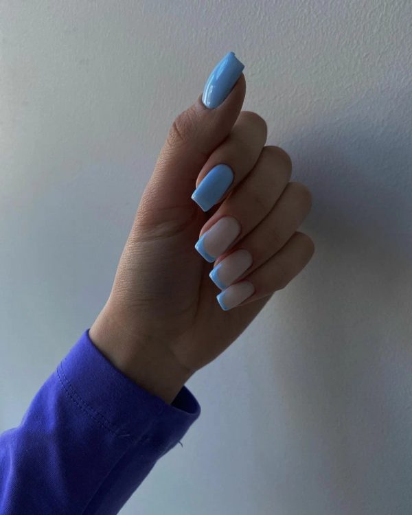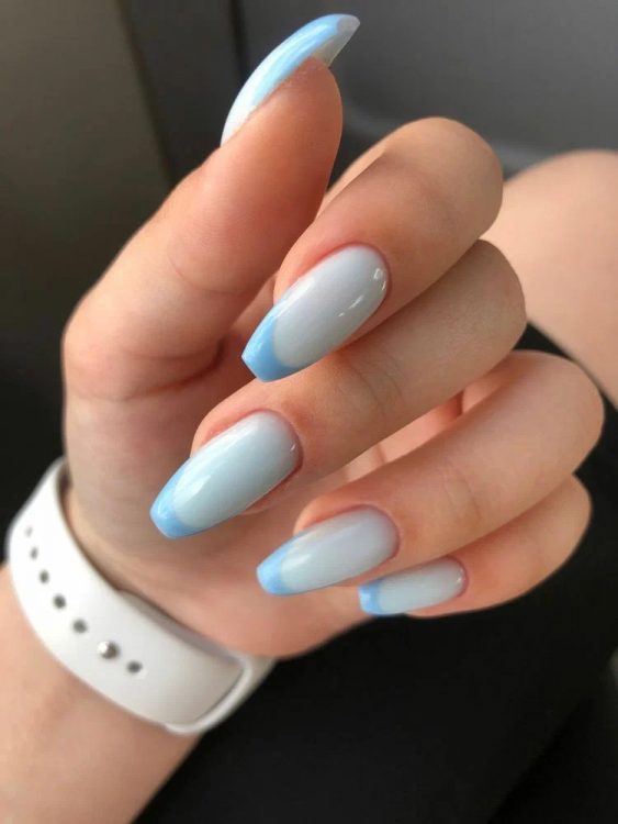 Ще один безпрограшний варіант манікюру на всі часи. Класичний французький манікюр білого кольору багатьом вже набрид, а ось френч, виконаний у блакитних відтінках, виглядає дуже свіжо, оригінально та елегантно. Французький манікюр чудово підходить для нігтів будь-якої форми та довжини.