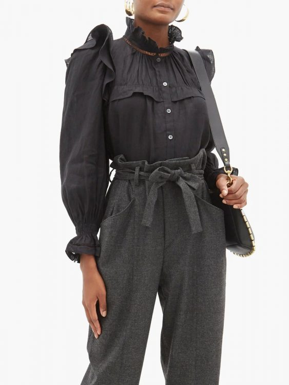 Чорна блуза у вікторіанському стилі – це стильна річ, яку можна поєднувати з багатьма речами з вашого гардеробу, наприклад, штанами, джинсами, спідницями і навіть шортами-бермудами.