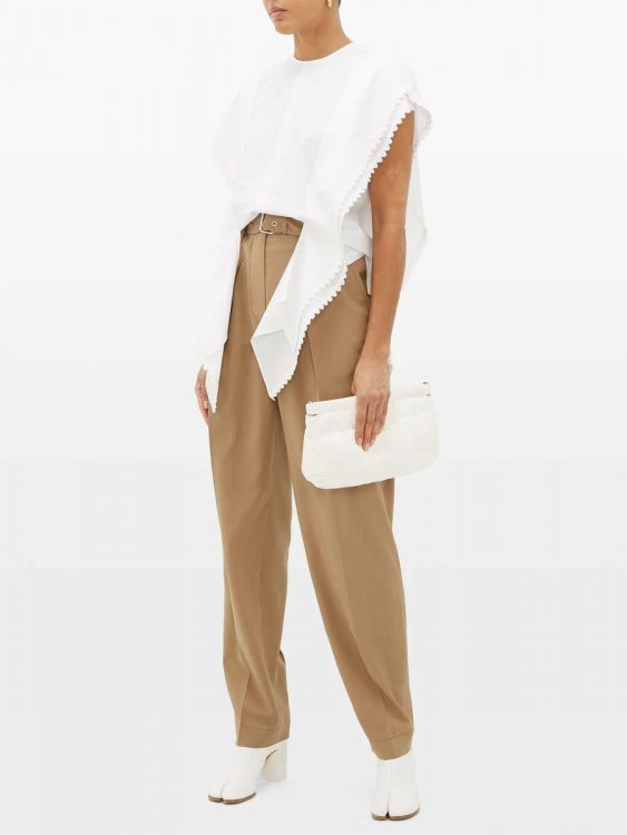 Блузка з незвичайними обрізними рукавами-крилами допоможе зробити образ невагомим, легким та ніжним. Обов’язково урізноманітнюйте свою весняну капсулу білою блузкою, за її допомогою ви з легкістю зможете створювати святкові варіанти образів і не тільки.