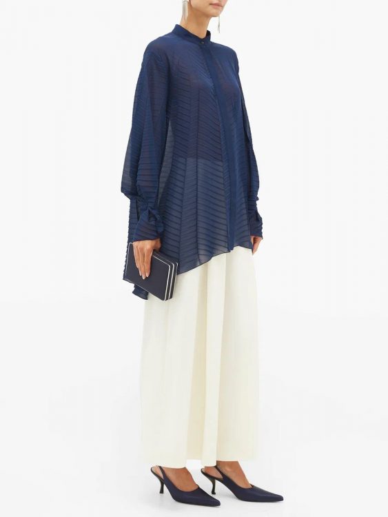 Яскраві асиметричні блузки з напівпрозорої тканини — ще одне обов’язкове придбання цього року, без якого не обійдеться жодна сучасна леді.
