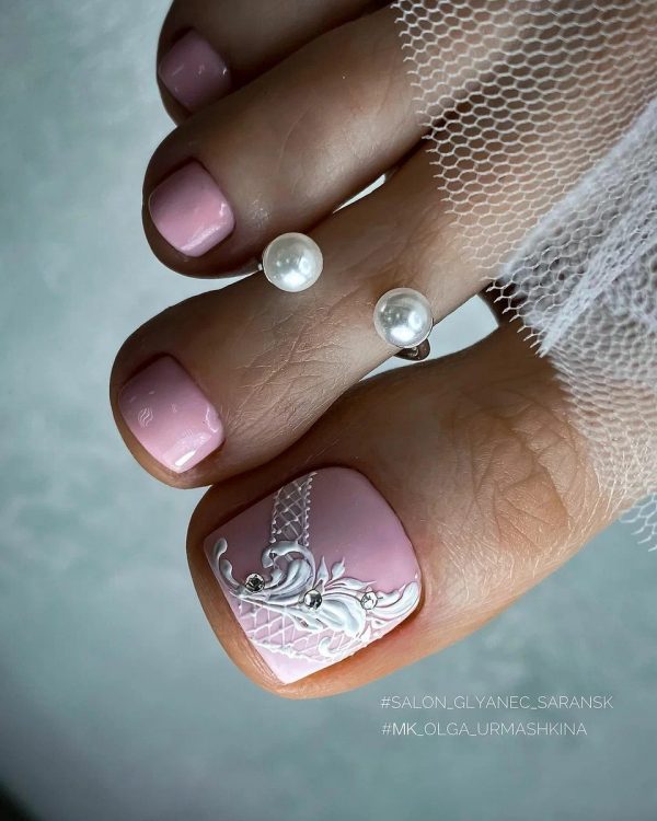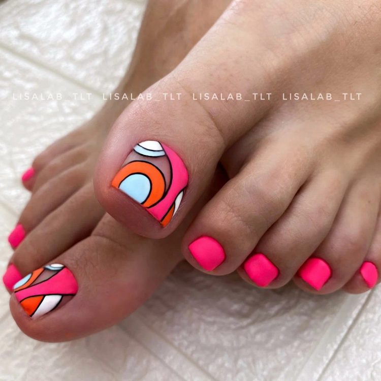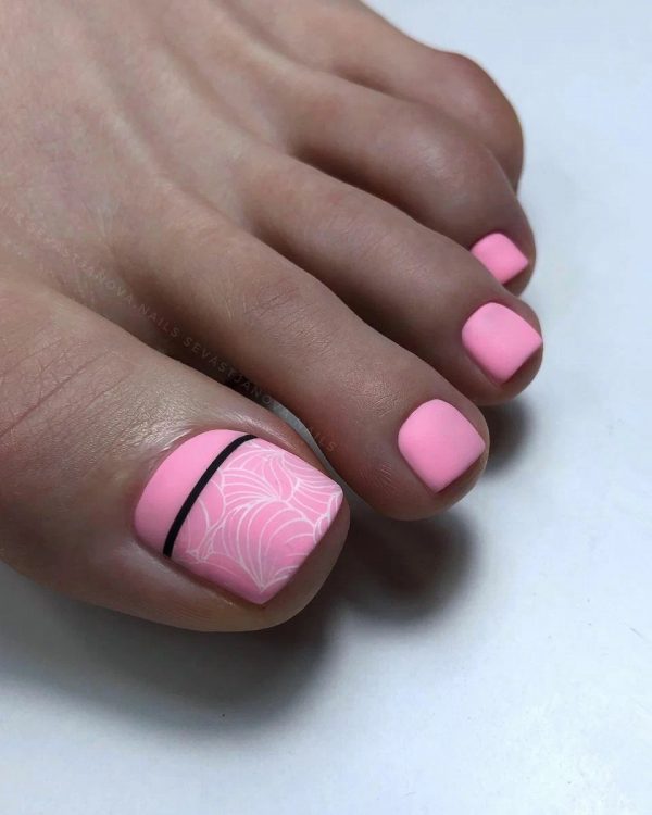 Ідеї яскраво-рожевого педикюру варіюються від м’яких елегантних кольорів до неонових відтінків 80-х, від простого покриття до ефектних дизайнів. Світло-рожеві відтінки пом’якшують квадратні нігті, які можуть виглядати занадто короткими і масивними. Також блідо-рожеві лаки чудово впишуться у традиційний французький педикюр із білими кінчиками. Яскраві рожеві нігті, у свою чергу, добре поєднуються з модними анімалістичними принтами та геометричними візерунками на акцентних нігтях.