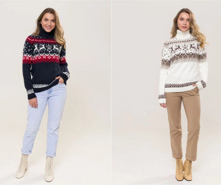 Жакардові моделі будуть на піку популярності цього сезону. Їх основною “родзинкою” є відомий орнамент. Тематика може бути різною – зображення тварин, рослинні візерунки, геометрія.