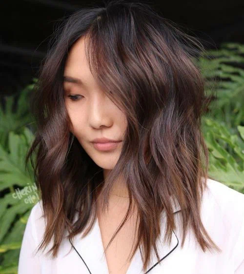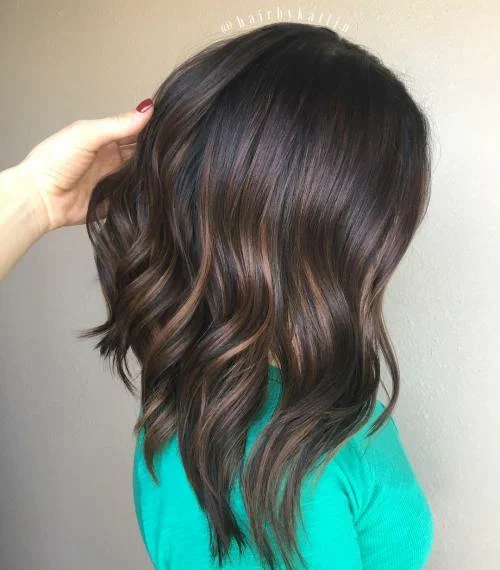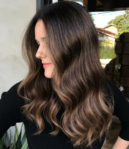 Тонкі відблиски карамельного відтінку на темному полотні виглядають виразно і ніжно, вони візуально роблять шевелюру густішою та доглянутішою. Щоб фарбування виглядало максимально натурально і природно, краще віддавати перевагу натуральним відтінкам: пісочному, карамельному, коньячному, медовому, а також персиковому.