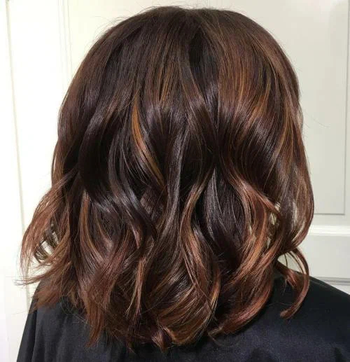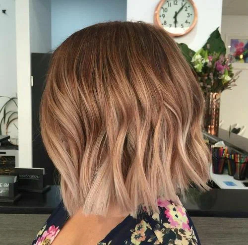 Модне фарбування, виконане в техніці «балаяж», «шатуш», а також «ейр тач» коньячного відтінку чудово виглядає не тільки на довгих, але і на більш коротких стрижках, таких, як «боб», «каре-боб» і класичне «каре».