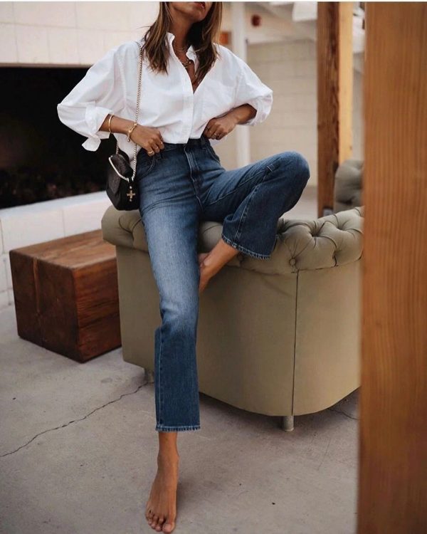 На піку популярності знову простежуються скінні джинси. Якщо ви любите ефектні образи, тоді дана модель цілком може стати вашим вдалим придбанням восени 2022 року. Носіть скінні з подовженим верхом і виглядатимете чудово.
