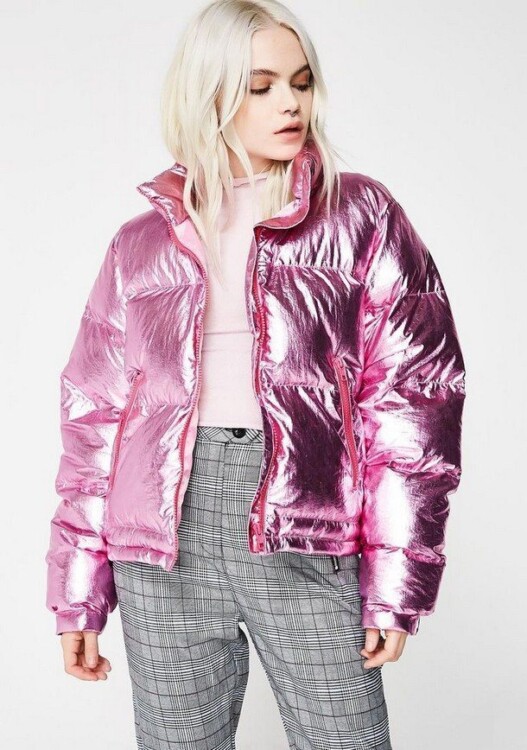Разом з моделями оверсайз, який довго перебуває в тренді, можна побачити колір металік. У ньому складно злитися з натовпом. Більшість пуховиків з металевим блиском представлено в спортивному стилі, тому така куртка не підійде для повсякденного носіння.